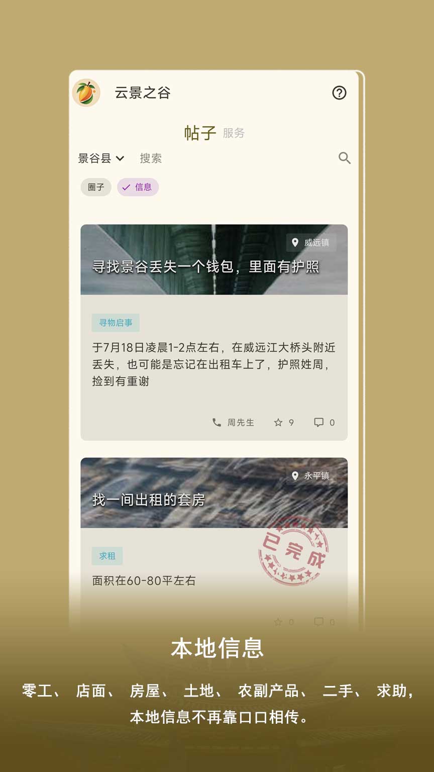 零工、店面、房屋、土地、农副产品、二手、求助,本地信息不再靠口口相传。