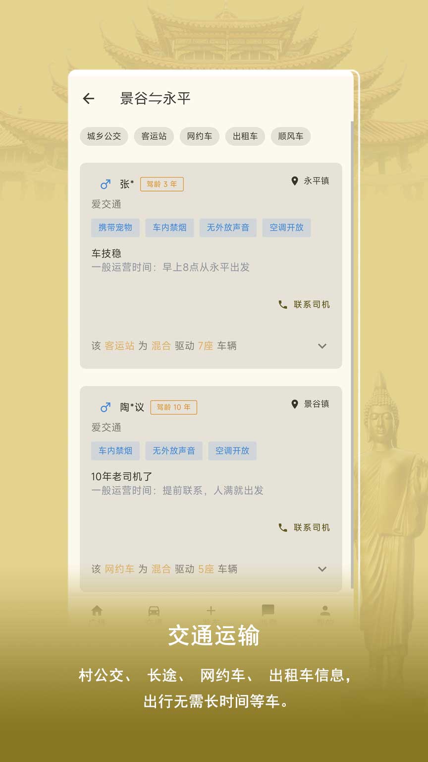 农村公交、长途、网约车、出租车信息,出行无需长时间等车。